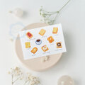 苺タルトとトーストいろいろとパンかごのカード、どれもかわいくておいしそう! ギフト仕様にして下さりありがとうございました♪ 食いしん坊の友だちにプレゼントするのが今から楽しみです♪