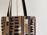 フランス製インテリアファブリックで仕立てたシンプルなバッグ。