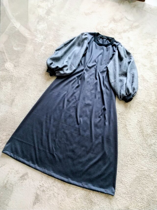 上質カットソー&リネングレーのたっぷりパフスリーブワンピース