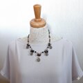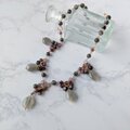 チェコガラスとカットガラスをアクセントに加えることで、光を受けて胸元で優しくきらめき、表情豊かなデザインに仕上げました。