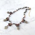 上品なグレームーンストーンをメインに、華やかなピンクトルマリンと奥行きある輝きのラルビカイトを組み合わせたネックレスです。