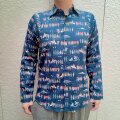 変り織りの綿生地に大名行列柄が描かれた粋なシャツ