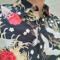 新作手作り長袖和柄シャツ(鶴と糸菊)