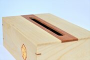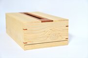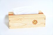 ティッシュの取り出し口と、箱の四隅部分にはけやき(欅)を使用し、アクセントと強度をつけています。