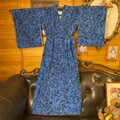 【着物リメイク ロング ワンピース|洗える化繊素材&名古屋帯サッシュベルト付き レトロ 古着 ハンドメイド 瑠璃—コバルトの間を行き来する青 KW-1073】