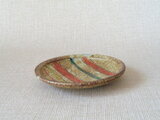 土の素朴な風合いに彩り豊かな線紋が映える丸皿です。
