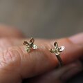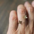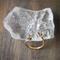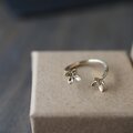 今回は花をは二つ、お花で指をハグするようなデザインのそしてオープンリング、フリーサイズでお作りしました。