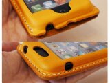 ・iPhoneはケースの下部から挿入します。立体加工により革をiPhoneの形にぴったりに成形しているため、