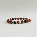 ガラスパールとビーズのmixブレスレット/8mm約18cm+2cm/コーラルルージュmix/G/made in japan