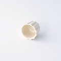 「カヌレ形のカップ(ホワイト)」の色味は、まっ白ではなく、ほんのりベージュ色、洋服で例えるとリネン素材の生成色に近い、やさしい白です