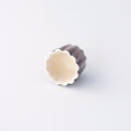 「カヌレ形のカップ(ブラウン)」の色味は、こんがりと焼き上がったカヌレのような焦げ茶色で、うつわの内側は生成色です、本物のカヌレと見間違う?とまではいきませんが、雰囲気のある色味です