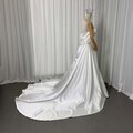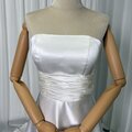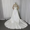 ウェディングドレス ベアトップ Aライン 光沢サテン ロングトレーン 編み上げ 2次会/合コン