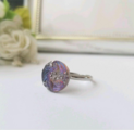 紫の花模様が美しく輝くチェコガラスボタンを使ったリングです。