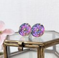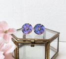 紫の花模様が美しく輝くチェコガラスボタンを使ったピアスです。