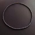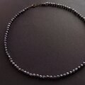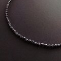 ヘマタイトは赤メノウなどの石に比べると重みもあります。『赤メノウ50cm・10g』に対して、同じ4ミリ粒でありながら『45cm・15g』なので身に着けると重厚感あり、室内でもキラリと輝いて派手過ぎず品良く見せてくれるネックレスです。
