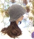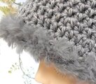 秋冬 ニット帽 バケットハット フェイクファーデザイン グレー