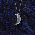 透明なガラスに光と色が滲む、月のかたちのネックレス・ペンダント。
