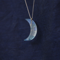 透明なガラスに光と色が滲む、月のかたちのネックレス・ペンダント。