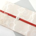 真っ白な紙とブリオンを使用しています。透け感のない濃い白なので、シンプルな帯上では目立つアクセントとなり、柄ある帯との組み合わせでもしっかりとワンポイントに。
