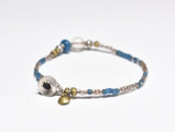 アンティーククリア&サックスブルービーズとoldチンシルバー&オリッサブラスの華奢なブレス