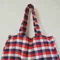 トリコロールカラーのギンガムチェック柄でとても素敵なバッグです。