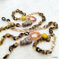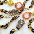 ネック部分の4か所にゴールドカラーのフィガロチェーンを挟むことでアクリル独特のトーンをピリッと引き締めました。