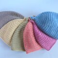 手染めの草木染め毛糸を丁寧に手編みにした、どんぐり型の可愛い帽子です。