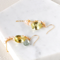 「秋露のきらめき」レモンクォーツxモスアクアマリンx淡水パールピアス14kgf