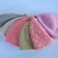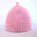 手染めの草木染め毛糸を丁寧に手編みにした、どんぐり型の可愛い帽子です。