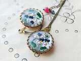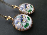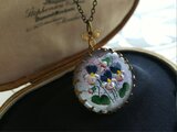 1920年代チェコのアンティーク、大変レアな3色スミレ(ビオラ)のお色の入ったインタリオGlassでお作りしましたネックレスを出品させて頂きます。