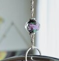 ・付属のチェーンには、花と響き合うように紫のガラスビーズをあしらいました。