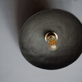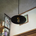 灯りをともすと、黒鉄のシェードにやわらかな陰影が浮かび上がり、空間に落ち着きと深みを与えます。真鍮のソケット部分と共に経年とともに美しい風合いを増し、年月を重ねるほどに味わい深い佇まいに。