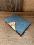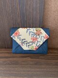 枝垂れ桜がデザインされた型染めの縮緬と深い海のようなブルーグリーンが素敵なリネンのツートンの数寄屋袋です。