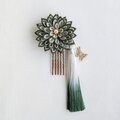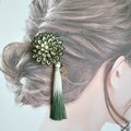 つまみ細工の花と蝶の髪飾り タッセル付き グリーン 《浴衣、七五三、成人式、着物》