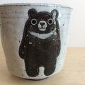 クマは陶磁器用絵具で彩色し透明釉、輪郭部分は無釉で使用した土の色です。