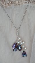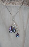 黒蝶貝と淡水パールを使用した小枝ペンダントです。