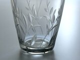 表面には風にたなびくような植物の図案がカットグラス(切子)の技法で施されています。