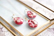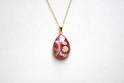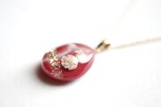ドロップ型のレジンにお花を二輪咲かせた可憐で大人っぽいペンダントです。