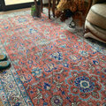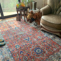 テラコッタ(オレンジがかったレンガ色)と渋みのあるダークレッドの間な感じで、華やかながら落ち着きがありお部屋に大変馴染みやすいトルコヴィンテージラグ