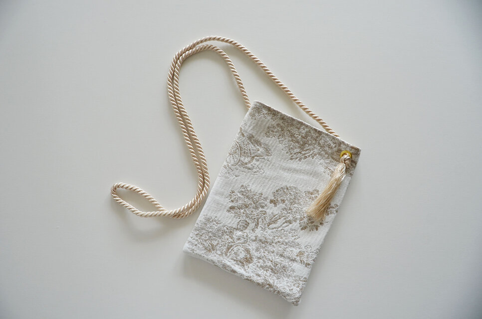 トワルドジュイは壁紙や家具、カーテンなどインテリアに使われることが多いのも特徴ですが、Somei et Miaiのマリンバッグの誕生ルーツでもある、インテリアファブリックでバッグを作るというインスピレーションにもぴったりで、このスマホポーチが誕生しました。これからの夏ムードを高めてくれます♪