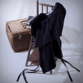 フロントに並んだくるみ釦もポイント、サイドのリボンテープがアクセントに◎