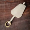 内径20mmの真鍮製キーリングがベル型の本体内に収納されており、外側に引っ張り出すことができます。