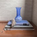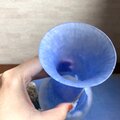 明るいブルーが美しい小ぶりのガラス花びんです。