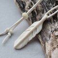 運命を感じました、これは私の元に来てくださる羽根なのだと。優しい白一色で、羽根はもちろんのこと、長さ調節のビーズも先端のちいさなふたつのビーズも本当に美しいです。経年変化も愉しんで、永く大切な御守りにさせていただきたいと思っています。この度は素敵な作品をお譲りいただき、本当にありがとうございました*