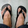 オシャレな本革のビーチサンダルを製作致しました。ヌメ革を黒で手染めしています。