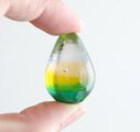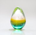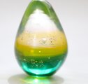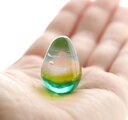 花畑みたいな色だなぁと感じて手に取り、感じたままに重ね合わせて制作した、小さなガラスの雫のオブジェです。