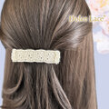 ビーズ刺繍とかぎ針編みの * Square Motif * バレッタ * ivory * Mサイズ