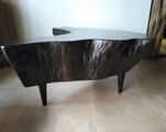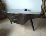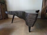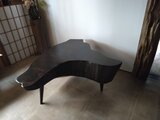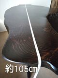 存在感たっぷりのとてもおもしろい形の、とても分厚い杉のテーブルです。