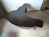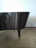 天板は磨き上げ、耳部分は自然の凸凹を活かした面と、ゴツゴツと彫りを施した面と変化を付けて仕上げました。