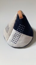 テトラ鍋つかみ、無事到着しました。 ちくちく+++の刺繍とパッチワークの配色など、バランスが良く、とってもセンスのある作品だと思います。 てっぺんにわざわざレザーを持ってくるあたりも、作品に対する愛を感じます。